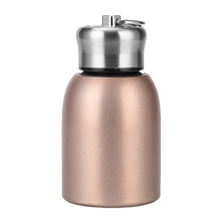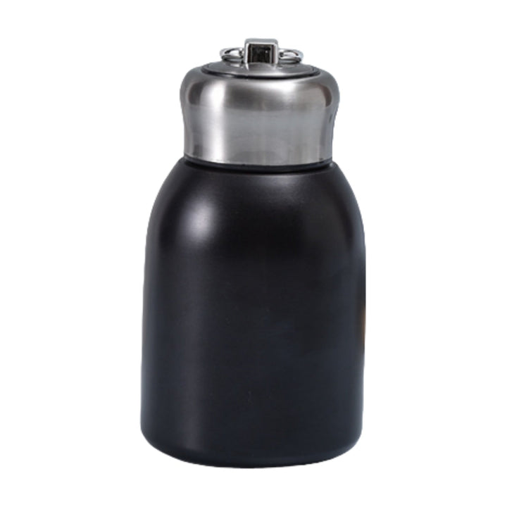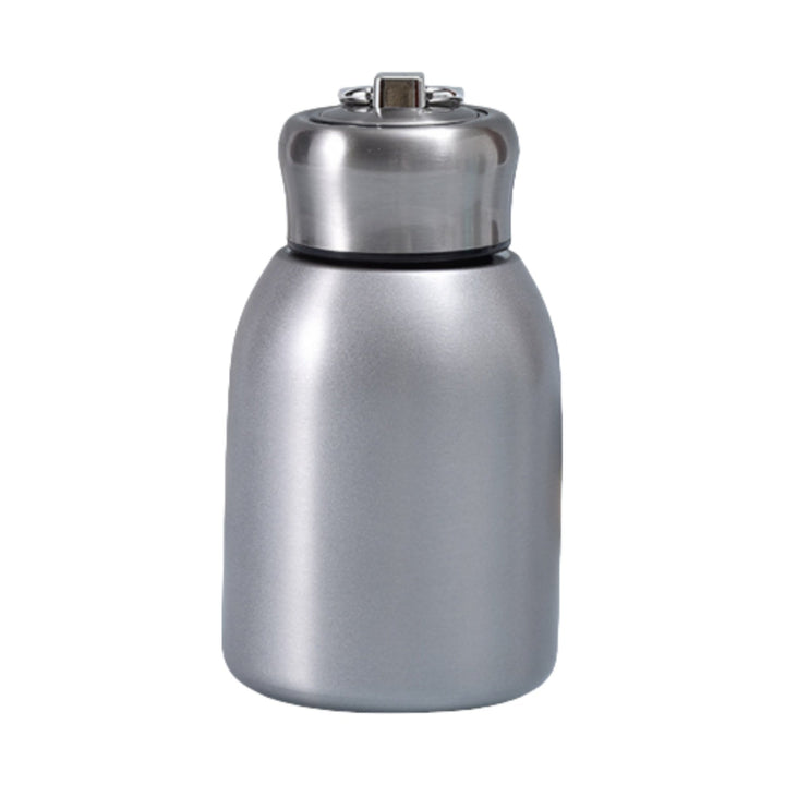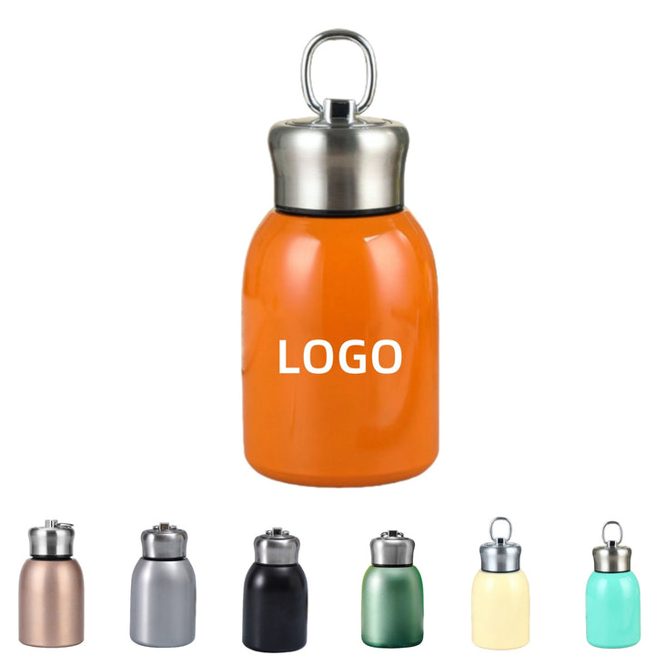 This pocket water bottle is made of high quality stainless steel for durability and corrosion resistance. Its construction includes a sturdy stainless steel body and matching stainless steel lid with a convenient loop at the top for easy carrying. Ideal for promotional items, corporate gifts or personal use. Customizable with your logo or company name.