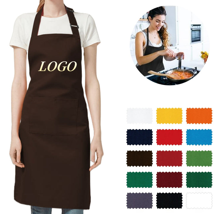 This customizable apron is made of polyester, stain-resistant, breathable, oil-proof and wear-resistant. Equipped with adjustable shoulder straps, the front pocket is convenient for placing cooking condiments and tools, etc. The kitchen apron measures 30.7"L x 23.62"W, and the pocket measures 7.87"L x 5.90"H, perfect for cooking, grilling, picnics, parties, barbecues, camping, etc. Welcome to customize your logo to maximize your branding.