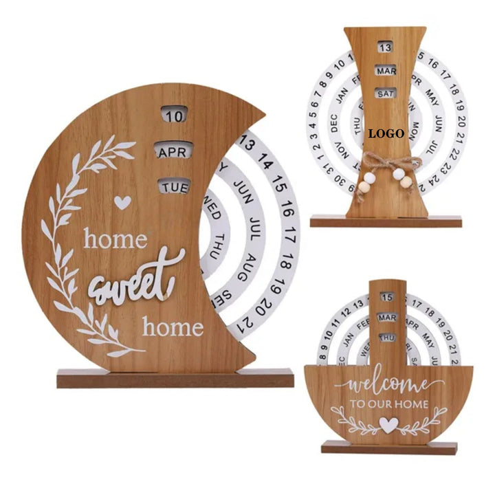This calendar consists of date, month and week, it is not limited to any year and can be reused. It is more interesting than ordinary desktop calendars. Selected wood, healthy and environmentally friendly. It is a great choice for your decoration, it can rotate smoothly, and can perfectly fix each week, month and date. It is a warm and unique item, suitable for giving to your family, friends or business partners. Customization with your logo is welcome.