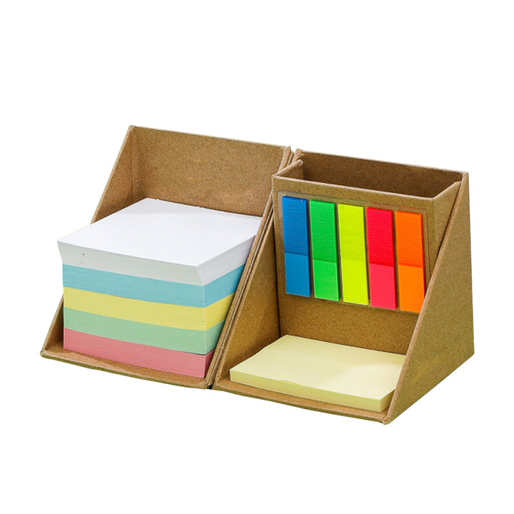 This sticky note cube box with pen holder is made of high quality kraft paper. Each notepad comes with small sticky notes in five colors, 100 Sheets per color, And a pen holder. The unique adhesive gives you the flexibility to leave notes and reminders on a variety of surfaces, Including computer monitors, Office doors, And walls. It makes a perfect gift for friends, Teachers, Classmates, And more. It can be personalized with your company name or logo for optimal brand exposure.