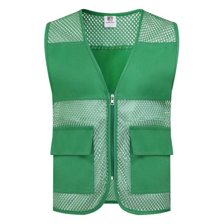 The multifunctional mesh vest designed for young volunteers integrates functionality and fashion with innovative design, becoming a bright symbol of outdoor activities. It is made of highly breathable mesh fabric and equipped with double mesh pockets for easy storage of personal items, taking into account practicality and sports aesthetics. The metal zipper is delicate and shiny, smooth and durable. The simple V-neck design and curved cuffs do not feel restrained.