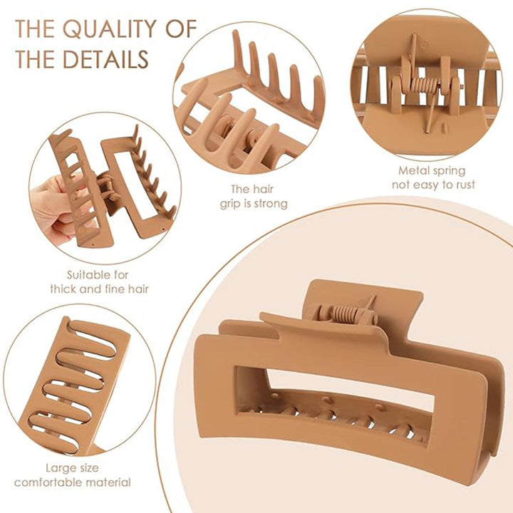 Made from high-quality plastic, this hair claw features a matte texture that prevents slipping, ensuring your hair stays put during yoga, running, or any other activity. The large size, 4. 1 inches, approximately 10. 1 cm, and 180° wide opening of the shark teeth ensure a firm grip on both thick and thin hair. Available in multiple colors, khaki, black, pink, green, orange, and off-white, these hair claws match any hair color and outfit. You can add your own design or company logo to make it an ideal promotional item or gift.