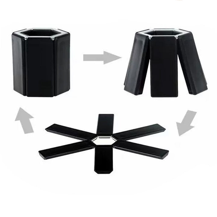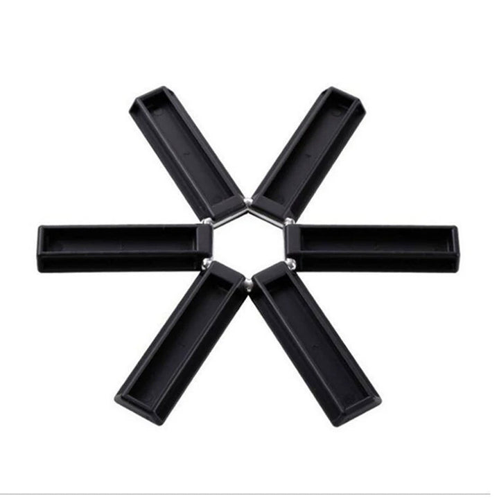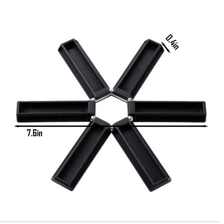 This pot and bowl mat, made of ABS material, stylish and beautiful, non-toxic and tasteless, high temperature resistance, good heat insulation effect, environmental protection and durable, so that you can put hot food on the table at ease. It is easy to clean and does not occupy stains. The foldable design saves space, is light, and can be set up for storage when not in use.