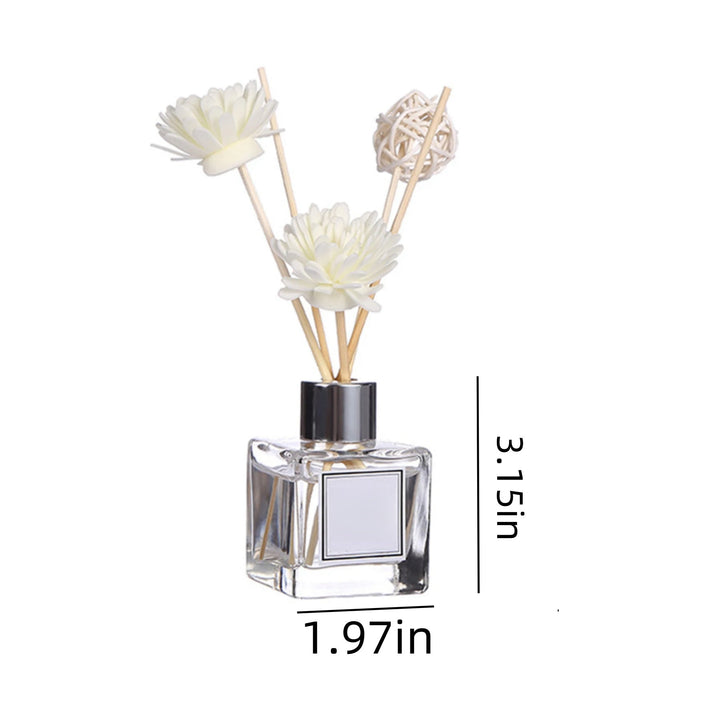 The rattan aromatherapy consists of a glass container, 4 rattan sticks, a rattan ball and 2 melaleuca flowers. The glass container has a capacity of 50 ml and the bottle is transparent. You can add any fragrance you like to the bottle to fill the room with your favorite smell, which is very suitable for desks, bathrooms, kitchens, living rooms and offices, hotels, etc. The package does not include the aromatherapy liquid. The product size is 1.97" x 1.97" x 3.15", welcome to customize your logo to increase brand influence.