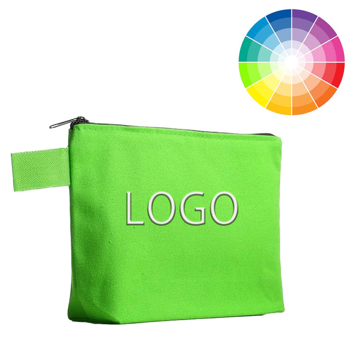 Made from high-quality cotton canvas tested for durability and texture, this bag offers a large capacity to hold all your items. The pure color and creative design add a touch of elegance and fun, while the zipper closure ensures secure storage. The customizable logo option allows you to personalize it with your own design or company logo, making it a perfect promotional item or gift.