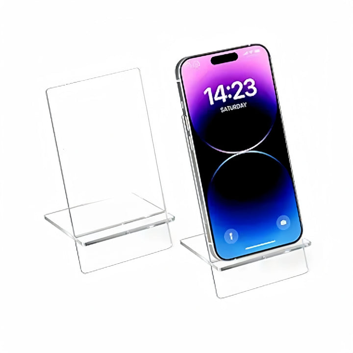 3mm thick transparent acrylic for most phone models on the market. Smooth edges make this phone holder feel great to the touch. Free your hands by letting you play games, Facetime, and watch videos while charging. High transparent appearance, for you to create an elegant modern office space. It is an ideal gift for students and colleagues. Recast transparent polished acrylic combines elegance and durability.