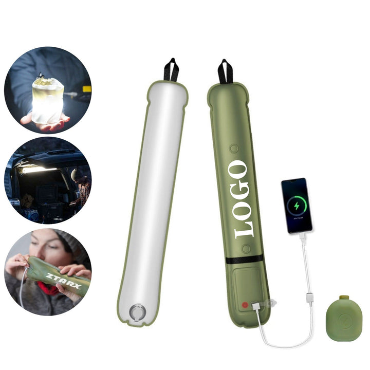 This camping lantern is inflatable and foldable. Waterproof rating is IP66, 4 lighting modes, magnets on both ends can fix it on magnetic surface. Multiple types: battery/USB plug-in/solar charging/color solar. Two battery capacities and sizes: 2000mAH/4000mAH, 23.6 inches, 33.8 inches. USB charging takes 3 to 4 hours, while solar charging takes 20 to 24 hours, providing 4 to 40 hours of use time. The price is based on USB plug-in model, if other types are needed, the price will be higher. Customized with your logo is welcome.