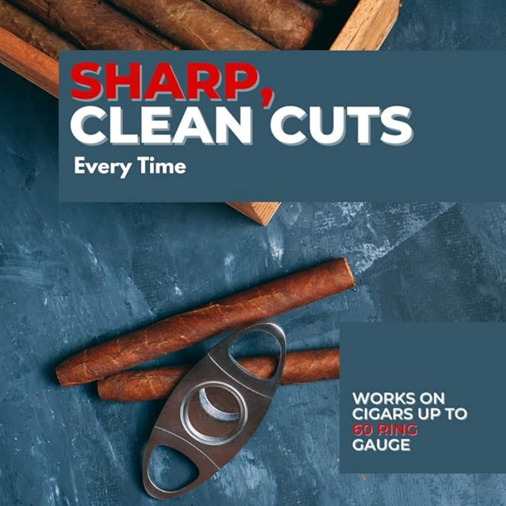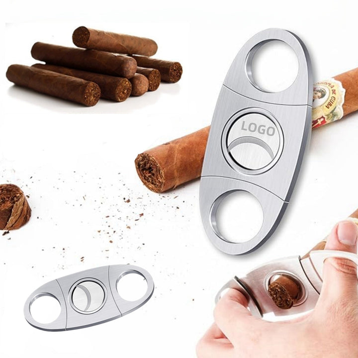 This cigar cutter is made of stainless steel, durable and sturdy. With very sharp blades, it can cut cigars cleanly and precisely. This cigar cutter is suitable for all sizes of cigars, up to 60 rings, a great gift for men. Product size 3.54" x 1.57", welcome to provide your brand information, customize your logo.
