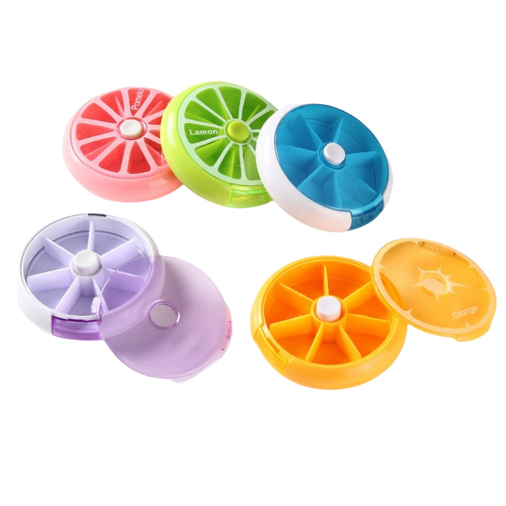This round plastic pill case is lightweight, portable and durable. With a total of seven squares, it can store a week's worth of pills, and its exclusive circular design, its compact size and rounded shape make it easy to carry in a pocket or purse, ensuring that it is always within reach when you need it, suitable for taking away when you travel, and can ensure the health of patients.