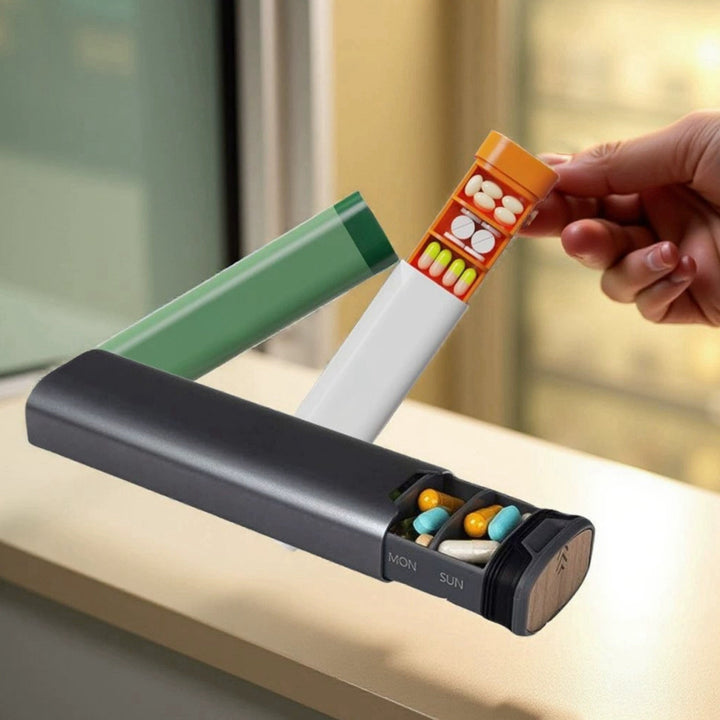 Made of safe ABS material, these drug storage boxes have a slender rectangular design that slides into seven separate compartments labeled with the days of the week. Each compartment can store up to 16 capsules or 14 vitamin tablets. This operation is suitable for both right - and left-handed users. Available in a variety of colors. When you bring these weekly pill lists, make sure you bring all of your prescription medications, supplements, vitamins, and other things you need. The current price is ABS material pill box, this product can also be made into black metal box, the price can be contacted.