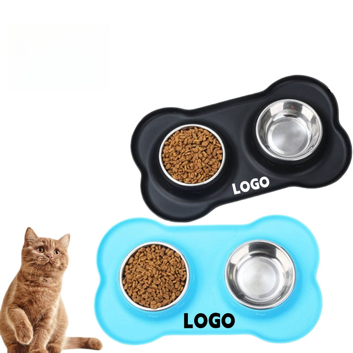 The bone-shaped base is made of food-grade silicone and is designed to better hold the bowl in place and prevent dogs from tipping over and slipping while eating. Double bowl design can hold food and water, or feed 2 pet friends at the same time. The internal food bowl is made of high quality stainless steel with a unique silicone bottom, which is the best choice for your pet's feeding time. Both the silicone holder and the stainless steel bowl are dishwasher safe. The raised silicone mat edges catch most spills and splatters, keeping the floor clean and also saving you a lot of pet food and time.