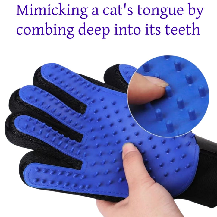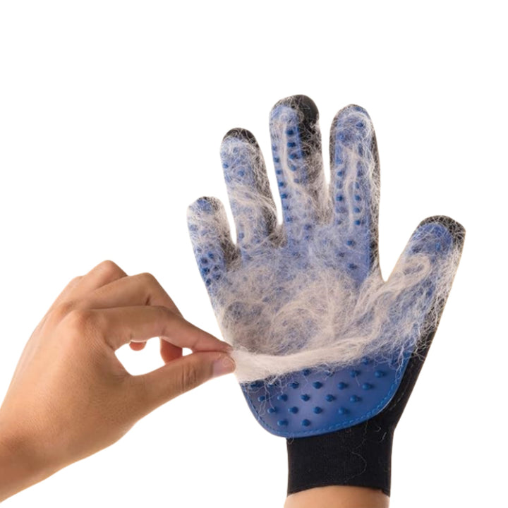 This product is made of rubber, the soft rubber material ensures gentle massage and grooming without painful hair removal or skin irritation, and also easily removes pet hair. With a five-finger arrangement, you can take care of hard-to-reach areas, like the face or tail.