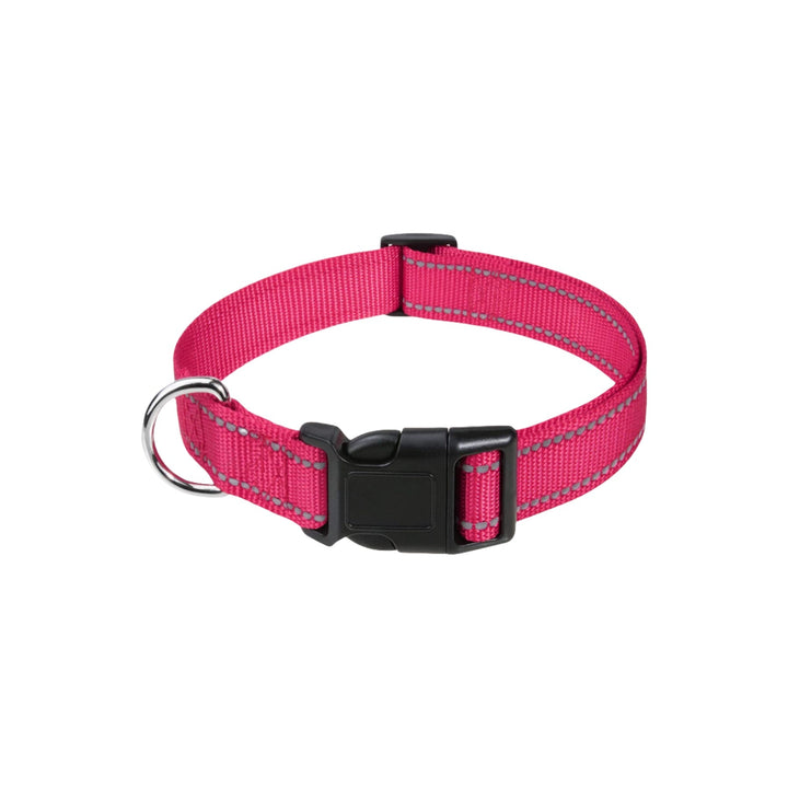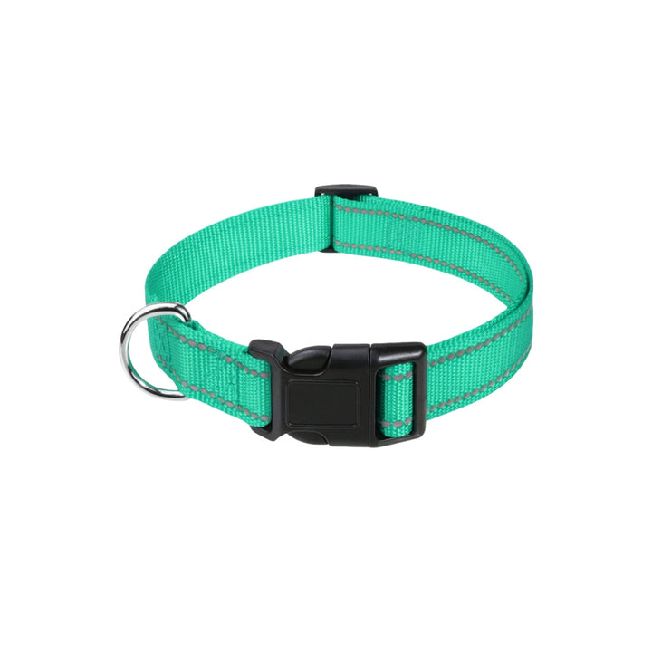 This size M pet collar is made of polyester and is available in multiple colors. Adjustable length is 14''-20''.Customizable with your logo or company name.