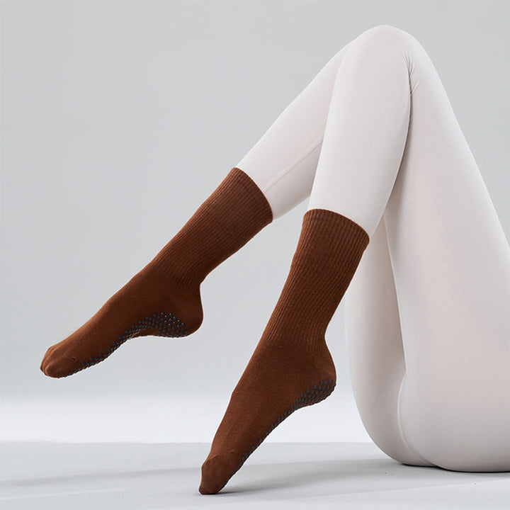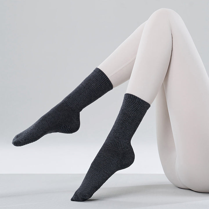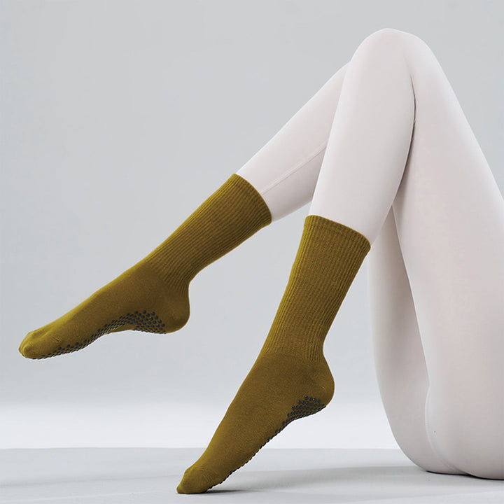 Professional solid color mid-tube non-slip socks, specially designed for yoga, Pilates, gymnastics, dance and indoor fitness. Anti-slip silicone particles are added to the bottom of the socks. Cotton fabric, comfortable and skin-friendly, strong elasticity, close to the skin and feet, mid-tube does not fall off, warm and shock-absorbing.