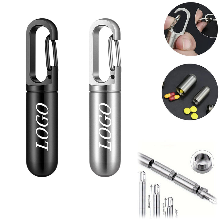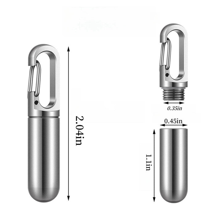 The portable medicine bottle is made of high-quality stainless steel, with a sturdy structure, anti-corrosion and anti-rust. The medicine bottle is well sealed and waterproof, and its O-ring seal ensures 100% waterproof. It is small in size and perfect for carrying around. With a built-in carabiner, it can be easily hung on jeans, pockets, purses, backpacks or key rings, allowing you to take medicine at any time without worrying about accidentally dropping it. The product size is 2.04 inches long, and there are multiple sizes for you to choose from, and it can be customized with your logo.