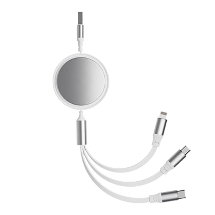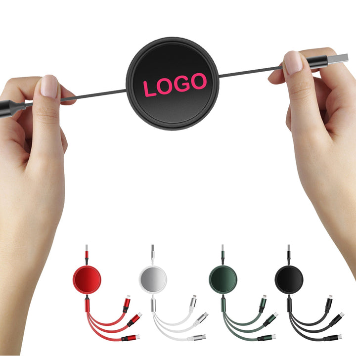 Discover our versatile 3 in 1 charging cable, Designed to meet your charging needs, Especially when you're outdoors. Compatible with a wide range of electronic devices, This adaptable charging cable is a must have for your tech gear collection. Foldable and retractable design with adjustable length makes it easy to adapt to various usage scenarios. Whether it's for the office, Business trips or travel, This data cable can be easily carried. Customizable with your company's exclusive badge
